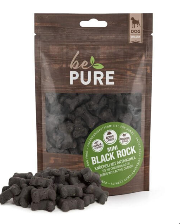 Die bePure Leckerlis Black Rock mit Aktivkohle unterstützen deinen Hund mit Aktivkohle bei Verdauungsproblemen, wie dünnem Kot oder Durchfall. Damit sie vom Hund in der Nase als Köstlichkeit wahrgenommen werden, sind die Leckerlis mit einem Vanillearoma verfeinert.