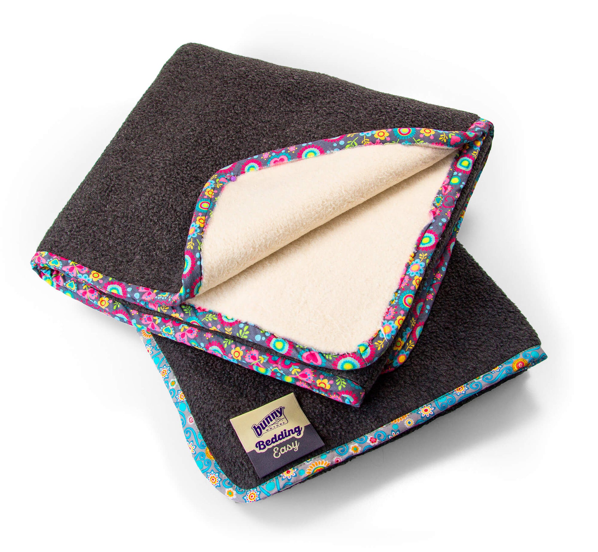 Saugstarke Unterlage für Zwergkaninchen & Nagetiere In den Käfig legen, mit Naturstreu einstreuen, Gehege mit Zubehör einrichten. Fertig. Darf nicht ohne Streu im Gehege verwendet werden. + die Pfoten bleiben schön trocken + auch geeignet für kranke Kleinsäuger, zum Beispiel nach Operationen + waschbar bei mind. 60°C + passend für Standardkäfig 1.20x0.60m bunny Bedding Easy besteht aus flauschig-weichem Fleece und extra saugstarkem Molton. Diese einzigartige Kombination sorgt dafür, dass Urin super schnell durchgelassen und im Molton aufgefangen und festgehalten wird. Meerschweinchen und Co. haben somit immer schön trockene Pfoten.