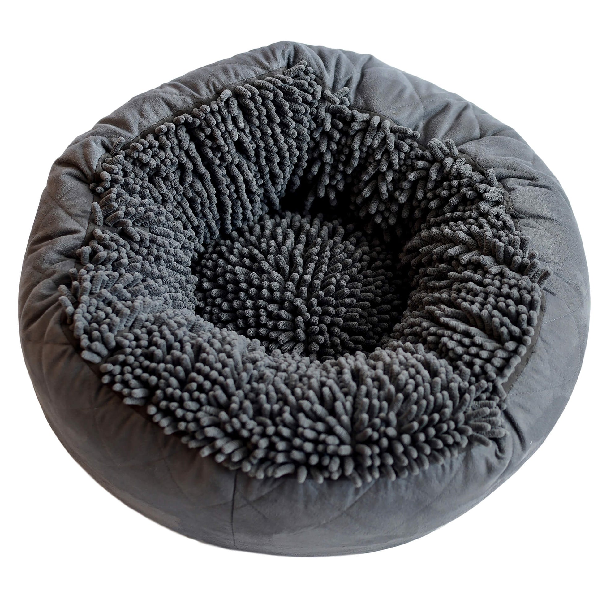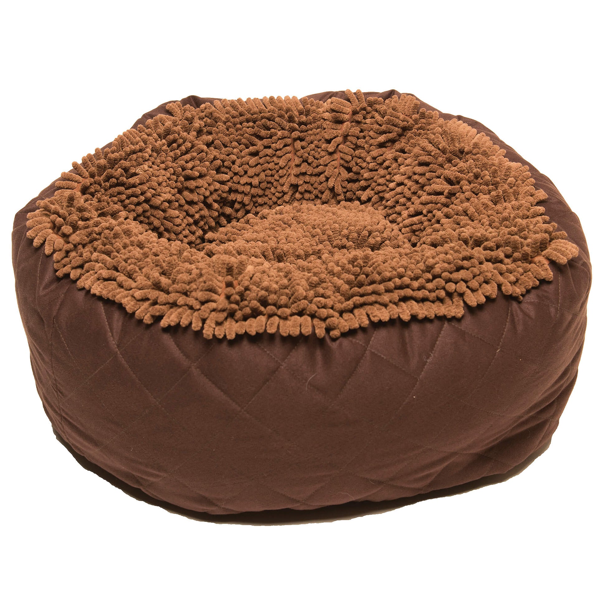 Das Dog Gone Hundebett rund hat eine kuschelige, ultraplüschige Mikrofaser-Chenille-Nudel-Oberseite und ist auf den Seiten mit einem schönen, gesteppten Wildlederstoff versehen. Die erhöhten Nackenrollen schaffen ein warmes Gefühl der Geborgenheit und bieten eine hervorragende Kopfstütze.