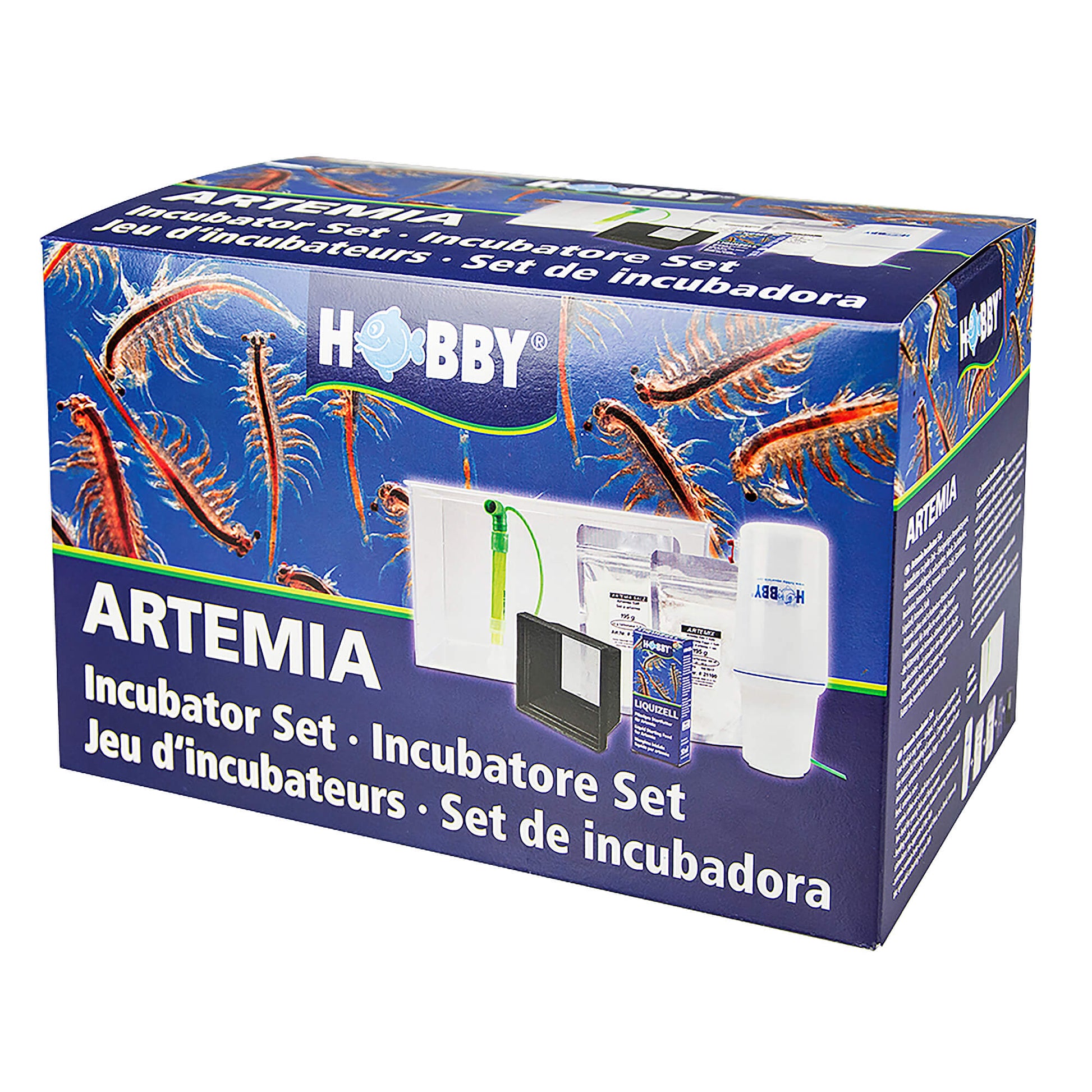 Das Profi- «Incubator Set» bietet alles für eine erfolgreiche, dauerhafte Aufzucht von Artemia. In dem Set enthalten sind: Incubator, Artemix, Artemia Salz, Aufzuchtbecken, Liquizell Startfutter und ein Artemia Sieb. Das Incubator Set sichert einen dauerhaften Vorrat von Lebendfutter. Das Schüpfen findet in der HOBBY Incubatorflasche statt. Die geschlüpften Nauplien werden dann in das Becken, das zum Set gehört, umgesetzt. Wenn sie zehn Tage alt sind, kommen sie als regelmässige Lebendfuttergabe ins Aquarium. Diese Brutphase kann immer wiederholt werden. Die ausgewachsenen Artemien sind besonders für Seewassertiere ein hochwertiges Futter. Lebendfutter zu jeder Zeit - Einzigartiges Komplettsystem, um Artemia erfolgreich aufzuziehen. + Artemia salina sind schalenlose Krebse und somit ideales Lebendfutter für Jungfische und heikle Fresser + die Fütterung mit Artemia aktiviert die natürlichen Jagdinstinkte und stimuliert den Appetit der Fische + Artemia enthalten beta–Carotine und intensivieren so als Futter die herrlichen Farben Ihrer Fische